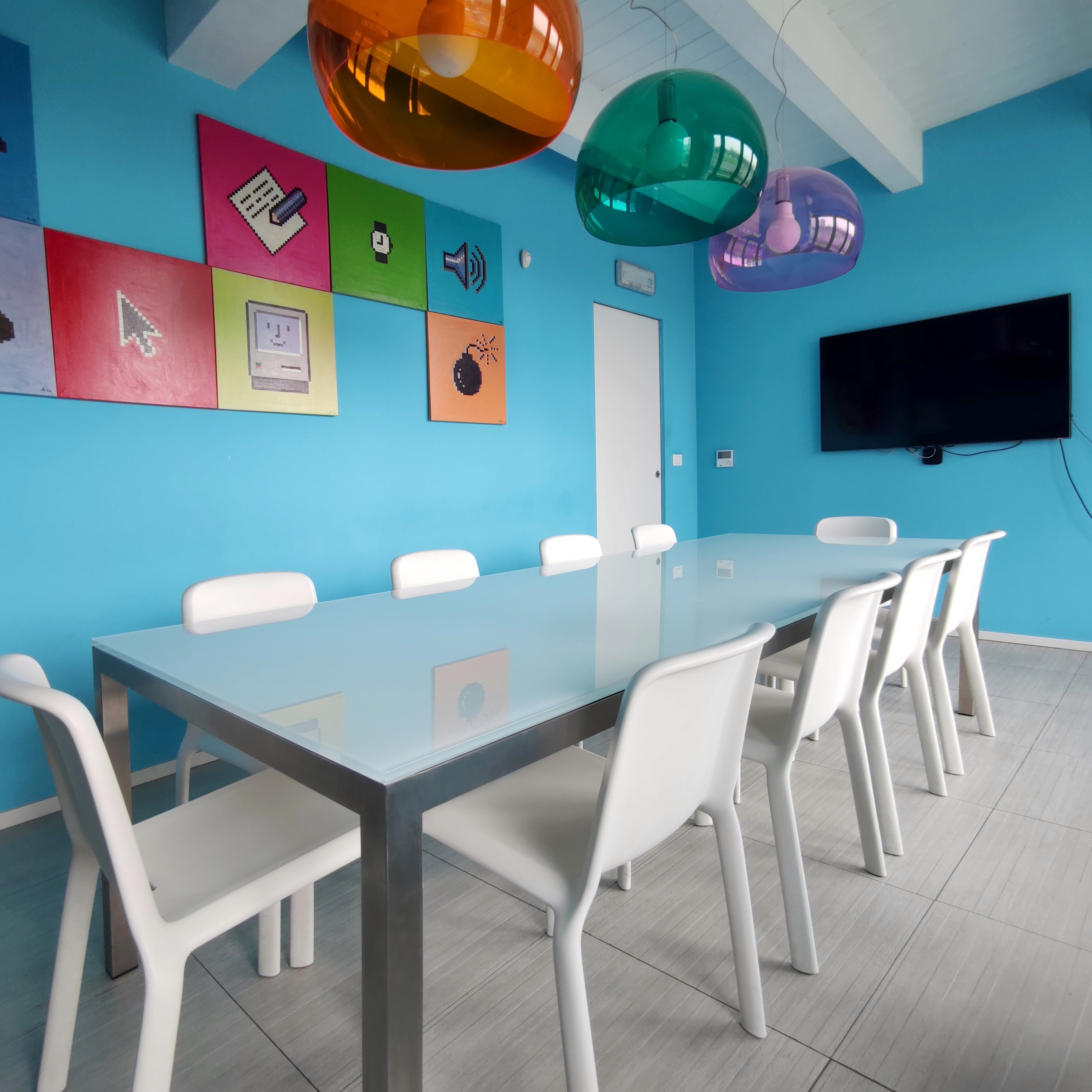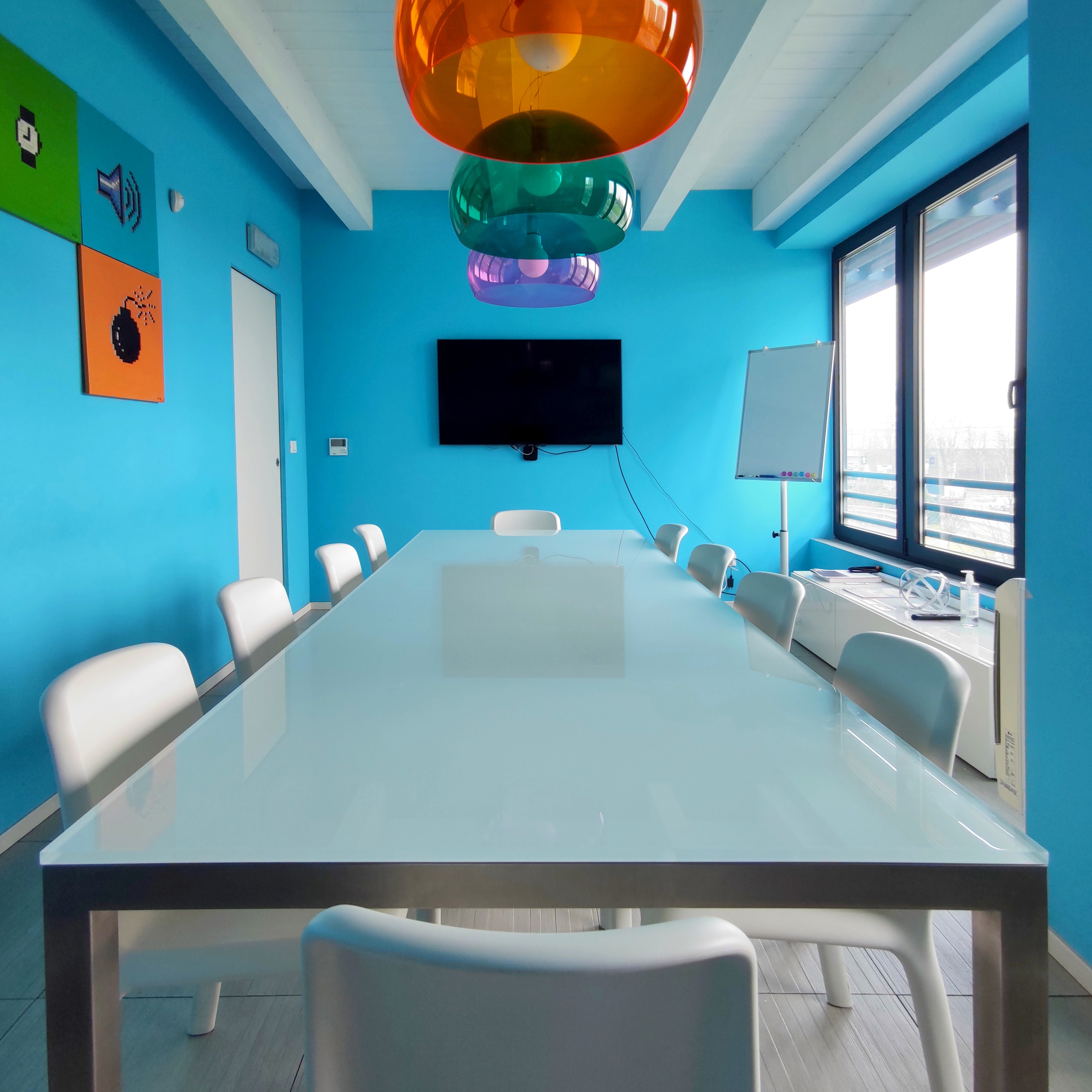 Sala equipaggiata con tutto quello di cui hai bisogno per fare una riunione col tuo team o fare una formazione.