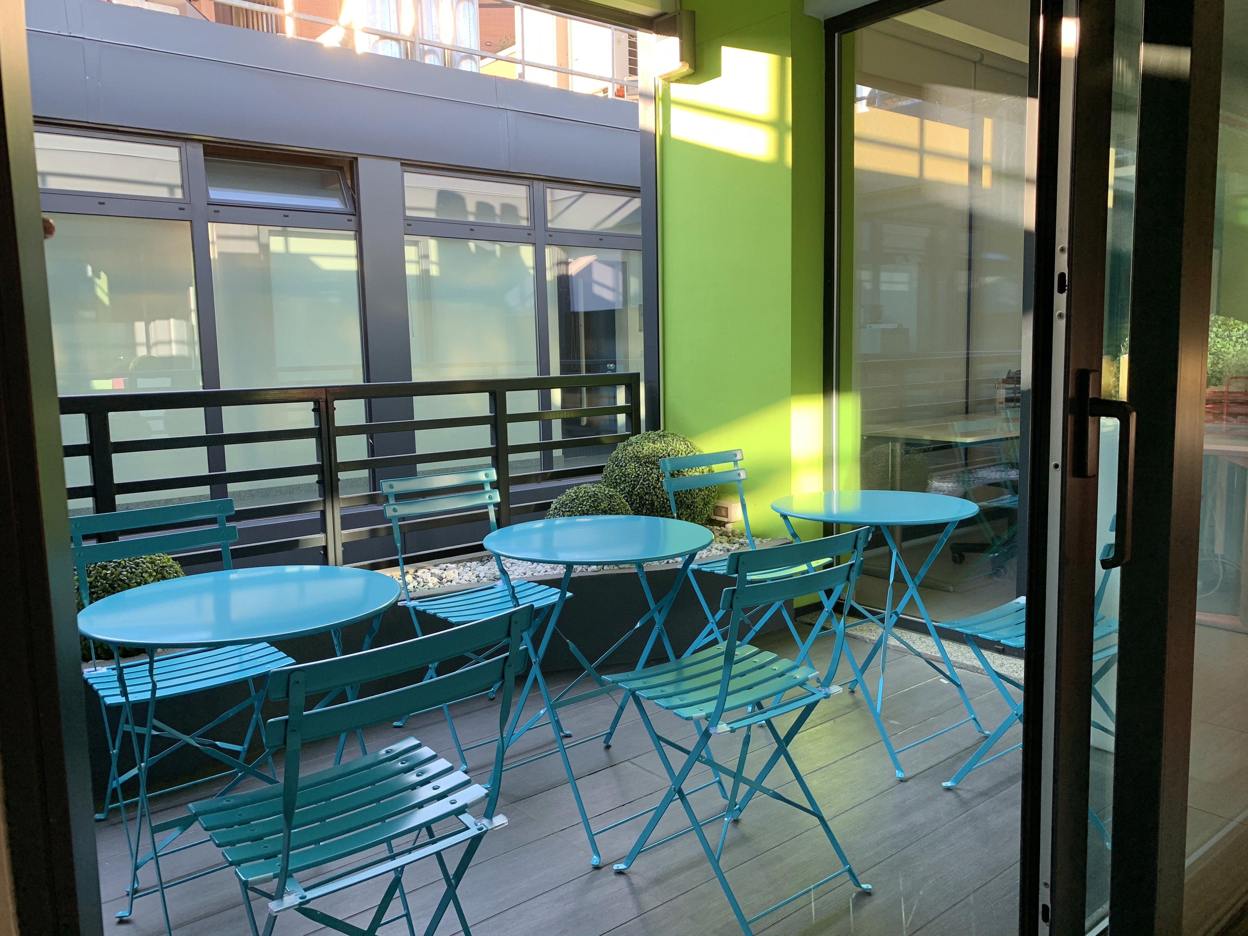 Tutti i nostri spazi - compresa l’area break utilizzabile per pause, pranzi e call - sono ricchi di comfort e immersi in una meravigliosa luce naturale.